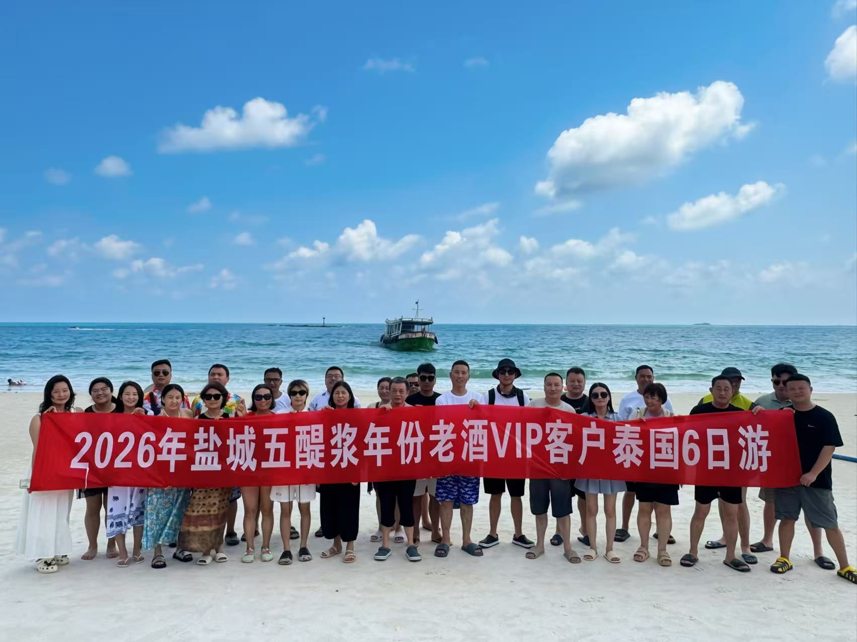 南洋浪漫行,酒香越山海。近日,五醍浆酒业和鑫鸿缘商贸为回馈核心客户的鼎力支持与厚爱,诚意打造了一场为期六天的泰国之旅,携手盐城年份老酒系列部分核心伙伴共赴曼谷、芭提雅,在椰林碧海间慢享时光,于异域风情中凝聚情谊。