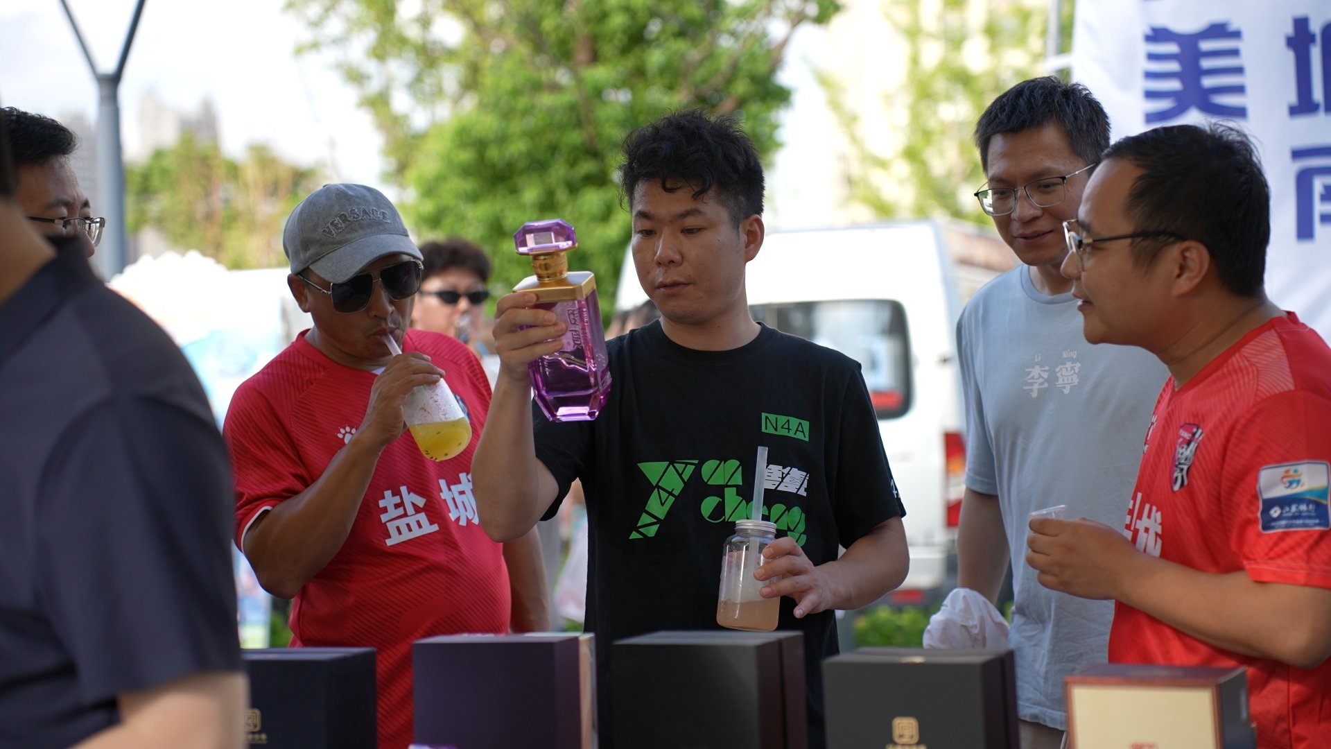 8月3日,“苏超”联赛盐城VS常州之战在盐城奥体中心体育场激情上演。赛事期间,盐城市文化广电和旅游局携手常州共同打造的“盐城‘足’够嗨,集市‘享’滋味”主题消费市集同步盛大开启。作为江苏老字号、江苏省非物质文化遗产,五醍浆以非遗魅力助阵市集,为常盐球迷奉上一场文化与味觉的双重盛宴。