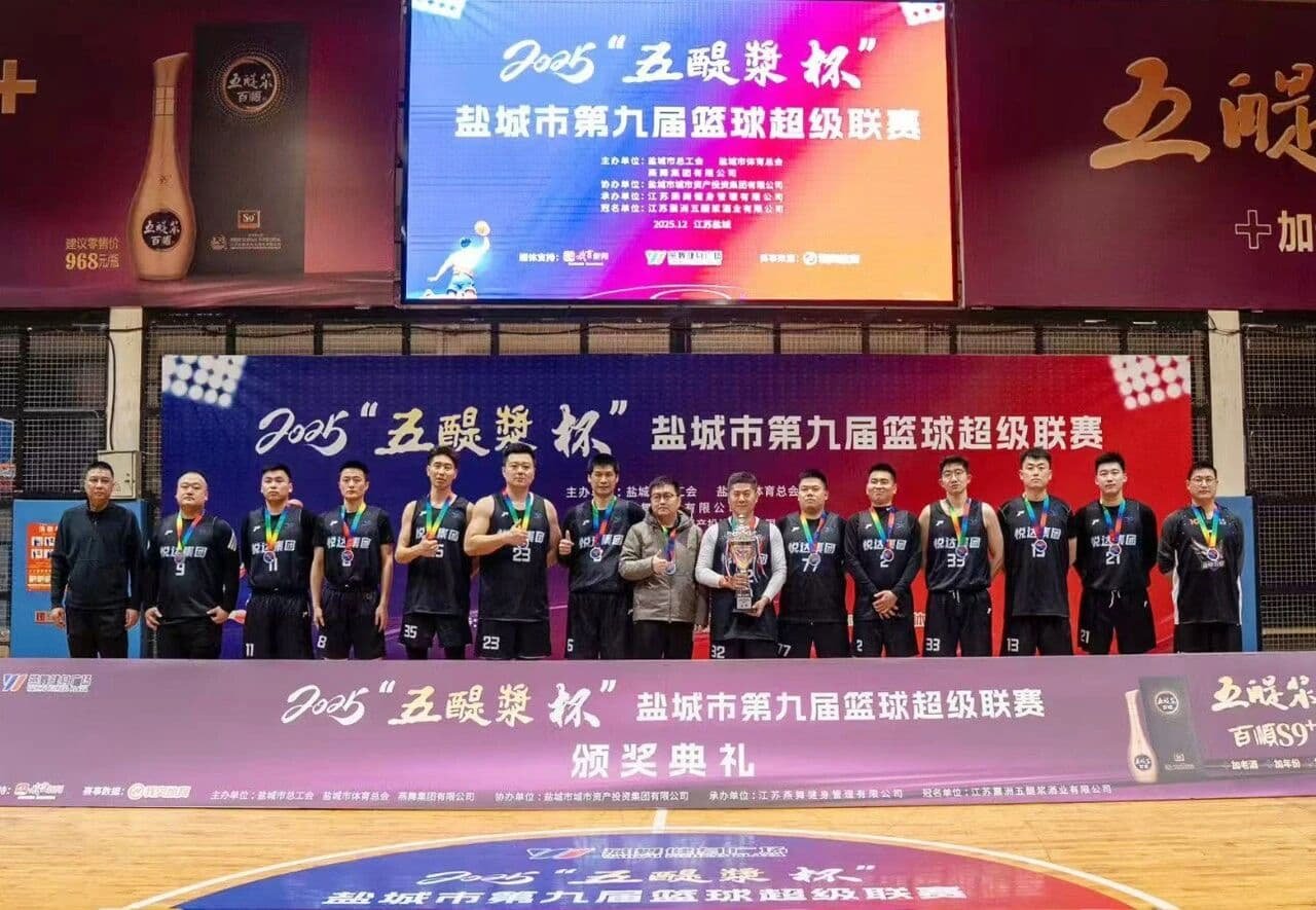 1月25日,由江苏名酒、江苏老字号及江苏省非物质文化遗产——五醍浆酒业独家冠名的2025“五醍浆杯”盐城市第九届篮球超级联赛在燕舞健身广场圆满落下帷幕。赛事自去年12月启动以来,历时一个多月,汇聚全市21支代表队、超过400名运动员,联袂呈现了一系列扣人心弦的高水平竞技盛宴。