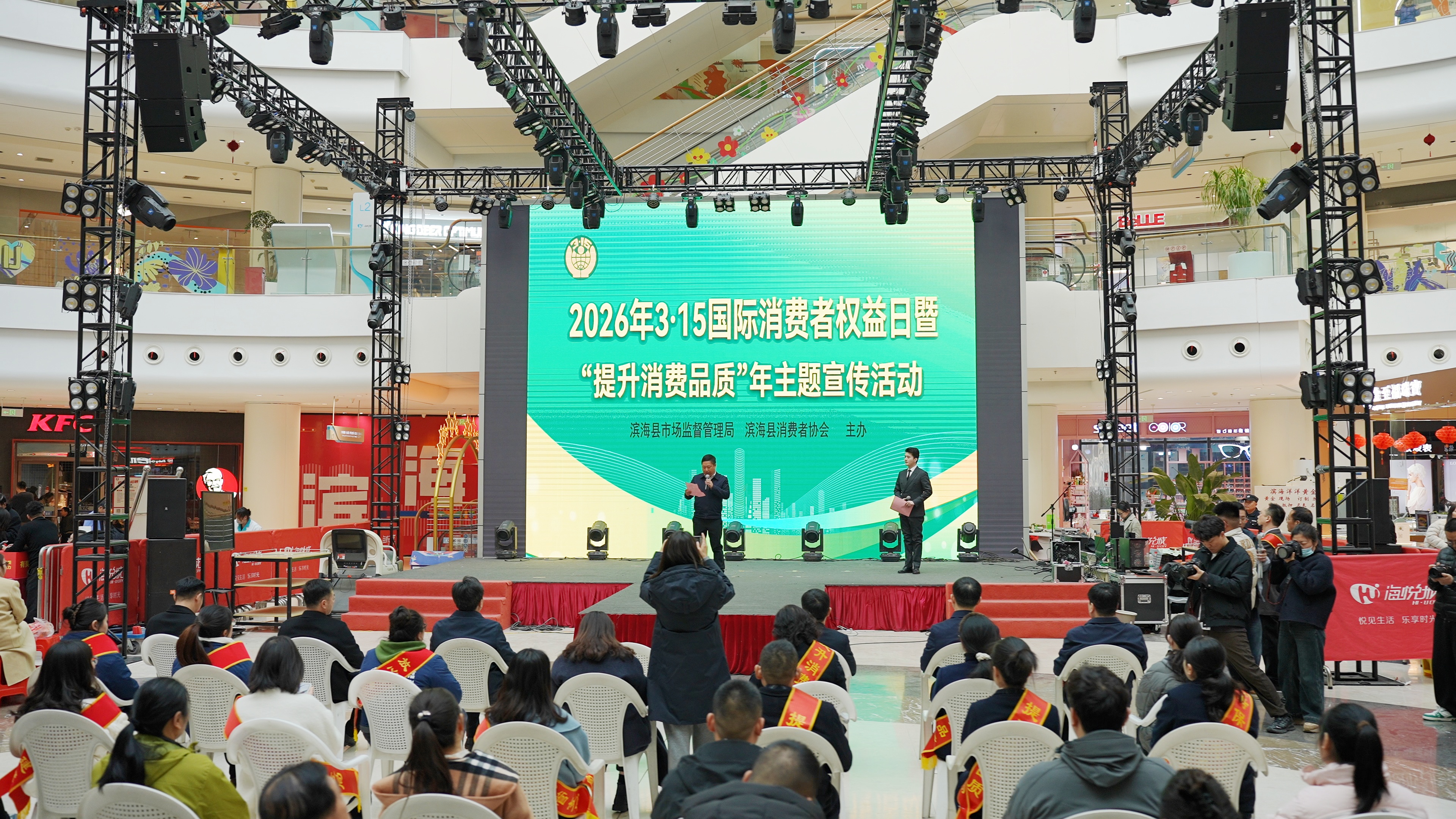 3月14日下午,在第44个国际消费者权益日来临之际,由滨海县市场监督管理局、滨海县消费者协会主办的“3·15”国际消费者权益日暨“提升消费品质”年主题宣传活动于海悦城一楼圆满举办。