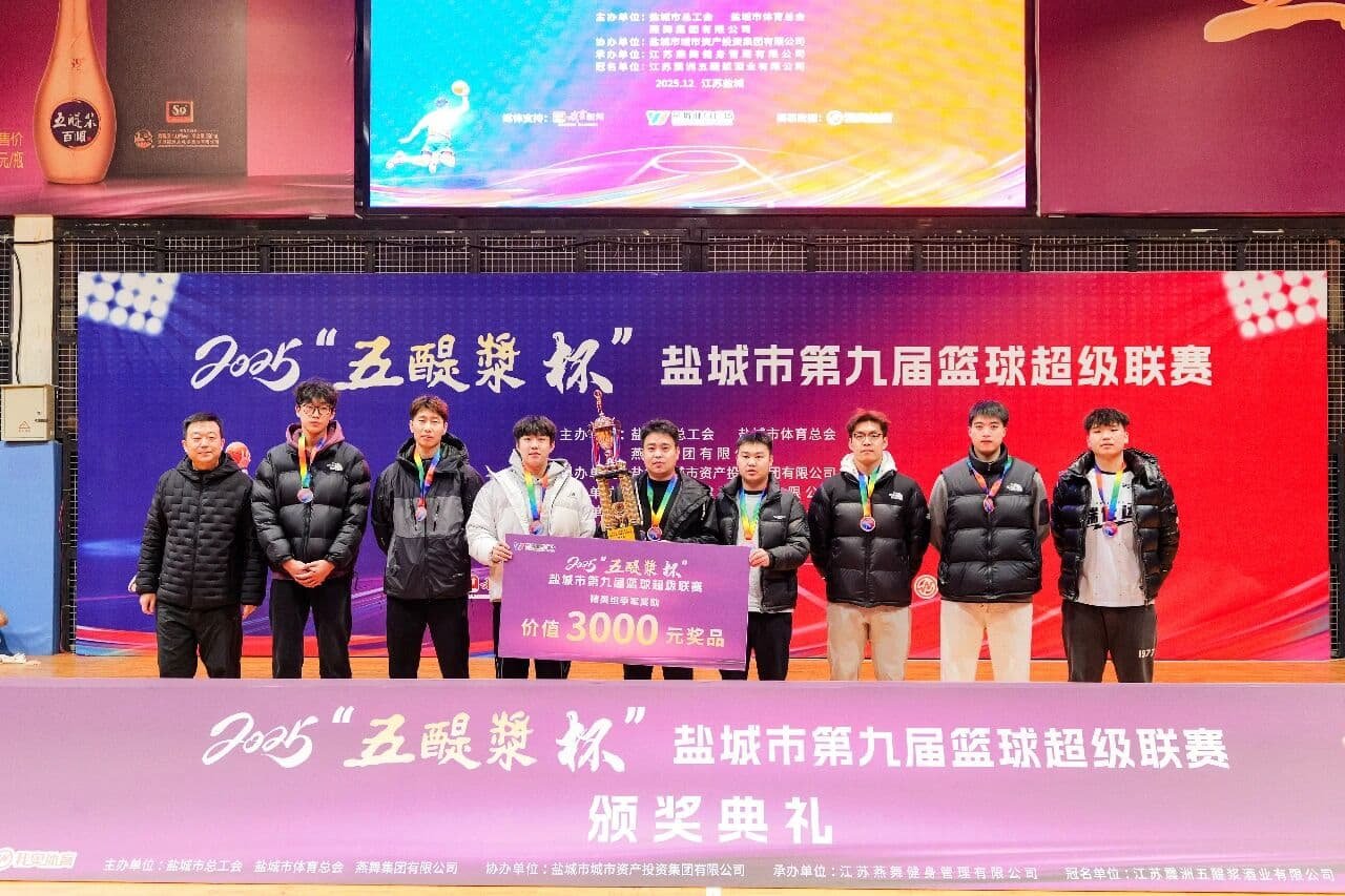 1月25日,由江苏名酒、江苏老字号及江苏省非物质文化遗产——五醍浆酒业独家冠名的2025“五醍浆杯”盐城市第九届篮球超级联赛在燕舞健身广场圆满落下帷幕。赛事自去年12月启动以来,历时一个多月,汇聚全市21支代表队、超过400名运动员,联袂呈现了一系列扣人心弦的高水平竞技盛宴。